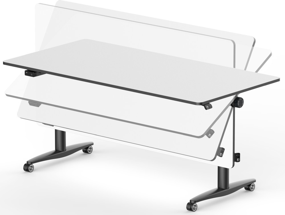 Logic­flex C von Logicda­ta: Das Tisch­ge­stell mit Flip­funk­ti­on wur­de für die Nut­zung in agi­len Arbeits­räu­men und die Anfor­de­run­gen krea­ti­ver Teams ent­wi­ckelt. Der Arbeits­tisch ist per Inline-Antriebs­tech­nik auf Knopf­druck in der Höhe ver­stell­bar und wird mit mini­ma­lem Auf­wand zum White­board. Dank der USB-PD-Kom­pa­ti­bi­li­tät kann er an gän­gi­ge Strom­quel­len ange­schlos­sen werden.