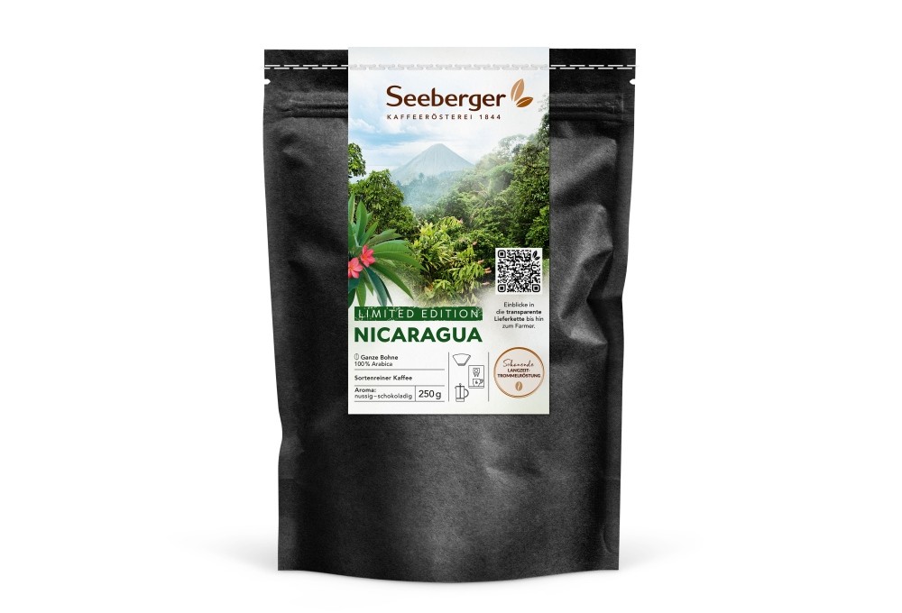 Leidenschaft für exzellenten Kaffee, kombiniert mit Transparenz, Nachhaltigkeit und langjährigen Partnerschaften im Anbau – dadurch zeichnet sich das Seeberger Röstkaffee-Sortiment aus. Und auch die erste Limited Edition Nicaragua steht für diese Werte. Sie ist eine Verbindung zu den Menschen, die ihn mit Leidenschaft und Sorgfalt anbauen. Der sortenreine Arabica-Kaffee aus nachhaltigem Anbau stammt von der Farm La Verona in Nicaragua und wird direkt, ohne Zwischenhändler, von Kaffeefarmer Manfred Günkel bezogen. Diese enge Zusammenarbeit garantiert nicht nur eine gleichbleibend hohe Qualität, sondern fördert auch den nachhaltigen Anbau und langfristige Stabilität für die Kaffeefarmer.