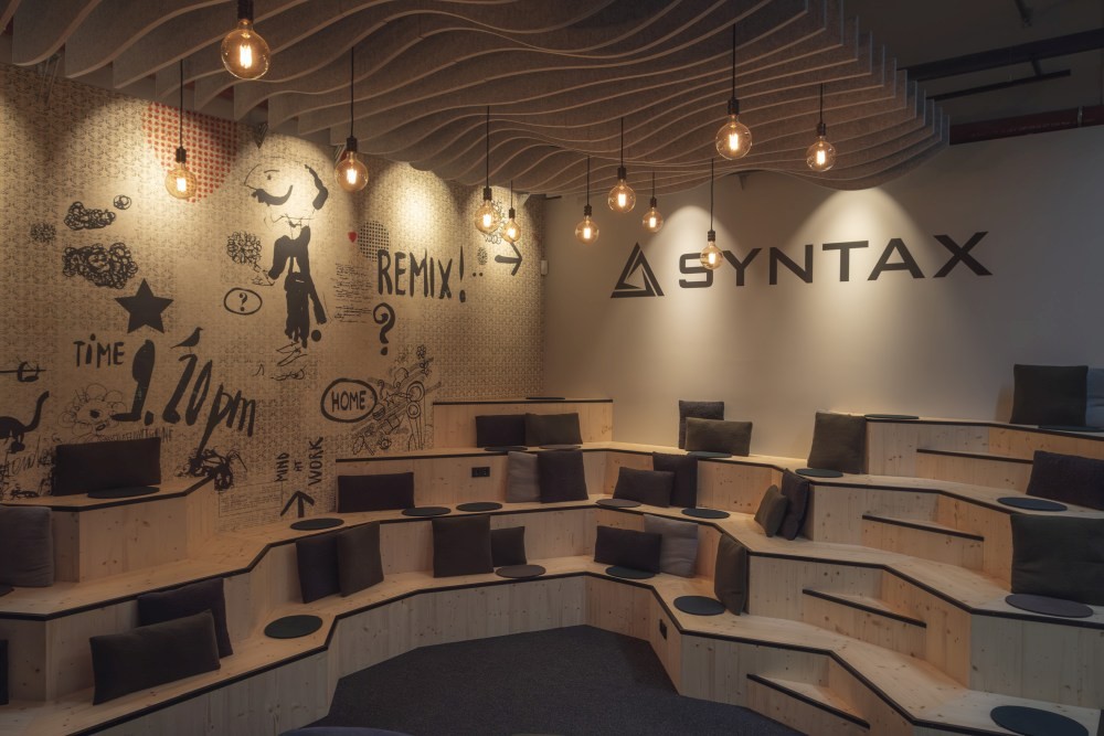 Mit dem Syn­tax-Pro­jekt wur­de ein völ­lig neu­er Arbeits­raum geschaf­fen – ein Ort, der Begeg­nung, Aus­tausch und krea­ti­ve Zusam­men­ar­beit ermög­licht. Wo einst eine Lager­hal­le mit angren­zen­der Wasch­stra­ße stand, ist heu­te ein inspi­rie­ren­der Workspace ent­stan­den, der indus­tri­el­le Ästhe­tik mit moder­nen Anfor­de­run­gen verbindet.