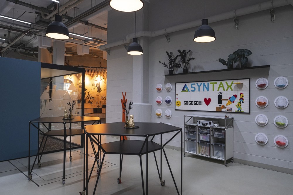 Interaktive Zone für kreative Köpfe: Lego-Wall und modulare Möbel fördern Gestaltung, Experimentieren und Netzwerken. Abbildung: Maximilian Heinsch