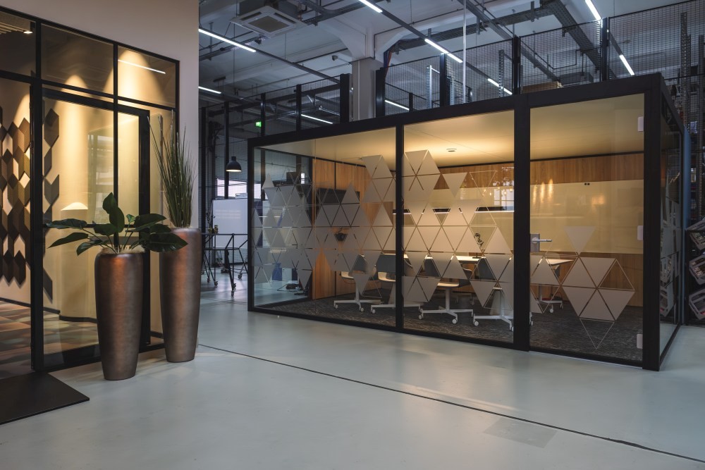 Flexibles Arbeiten mit Fokus: Die „Think Box“ vereint Transparenz und Rückzug für konzentrierte und produktive Meetings. Abbildung: Maximilian Heinsch