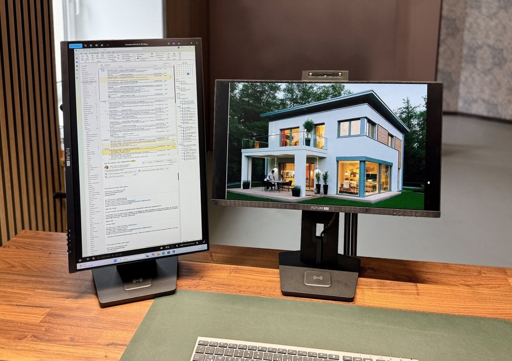 Schon seit Jah­ren lege ich bei mei­nen Mit­ar­bei­ten­den ein beson­de­res Augen­merk auf ergo­no­mi­sche PC-Arbeits­plät­ze. Mit der Ent­wick­lung unse­res modu­la­ren All-in-One-Desk­top-PCs konn­te ich wirk­lich alle ergo­no­mi­schen und ästhe­ti­schen Anfor­de­run­gen und Funk­tio­nen eines Büro­ar­beits­plat­zes in ein kabel­frei­es, mini­ma­lis­ti­sches Erschei­nungs­bild packen. Für die Büro­um­ge­bung des Immo­bi­li­en­un­ter­neh­mens CFB Living pas­sen die neu­en Future­AIO-PCs per­fekt: Sie sind ein State­ment für moder­nes Arbei­ten – redu­ziert, ergo­no­misch und zukunfts­si­cher. Ent­wi­ckelt für alle, die Wert auf Design, Funk­ti­on und Nach­hal­tig­keit legen – und den Arbeits­platz als pro­duk­ti­ve und ange­neh­me Wir­kungs­stät­te sehen. Das Note­book darf getrost zuge­klappt zu Hau­se blei­ben – der Rücken bleibt gesund und auf­recht. Kein Kabel­sa­lat nervt, kei­ne Web­cam ist abge­steckt und das Smart­phone bleibt auf­ge­la­den. Ob Ein­zel­bü­ro, Groß­raum­bü­ro oder Büro mit Publi­kums­ver­kehr: Der Future­AIO passt sich dank wech­sel­ba­rem PC-Moduls lau­fend an jede Anfor­de­rung an. Das macht ihn zur idea­len Wahl für Unter­neh­men, die heu­te fle­xi­bel arbei­ten und mor­gen bereit für KI, höhe­re Per­for­mance oder mehr Spei­cher sein wollen.“
