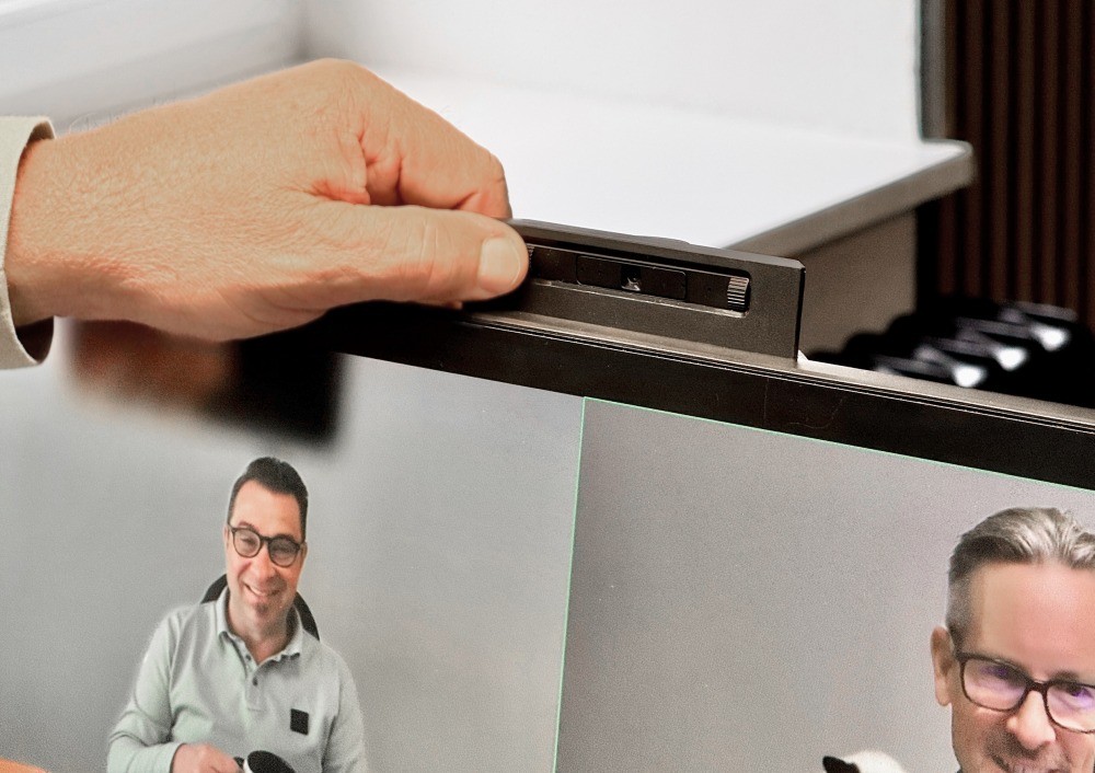 Die Web­cam ist ver­senk­bar und ermög­licht dank fle­xi­blem Kame­ra­win­kel pro­fes­sio­nel­le Video­calls. Abbil­dung: Con­cept International