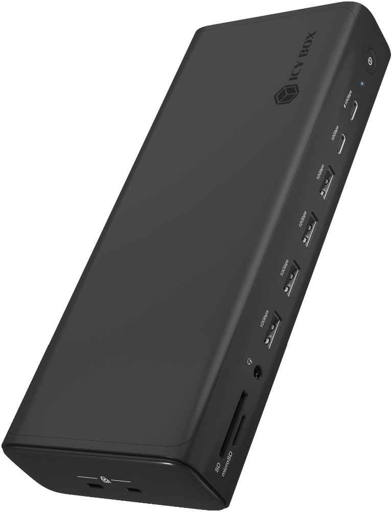 IB-DK7401-CU31 von Icy Box: Die­se Docking­sta­ti­on von RaidSo­nic Tech­no­lo­gy erwei­tert eben­falls das Anschluss­spek­trum jedes Note­books und Com­pu­ters zu Hau­se und im Büro. Das Modell ver­fügt über vier USB-A- und zwei USB-C-Ports (jeweils USB 3.2 Gen 2), einen Dis­play­Po­rt, einen Kar­ten­le­ser sowie Power Deli­very 3.1 mit einer Lade­leis­tung von bis zu 140 Watt.