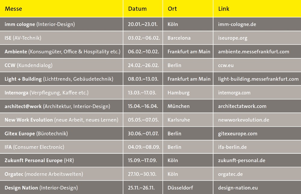 Viele Messen sind im Jahr 2025 mit einem Zuwachs an Besuchern und Ausstellern erfolgreich zu Ende gegangen. Die Messebranche blickt daher weiterhin optimistisch in die Zukunft. Wir geben einen Überblick über die wichtigsten Messen mit Bürobezug im Jahr 2026.