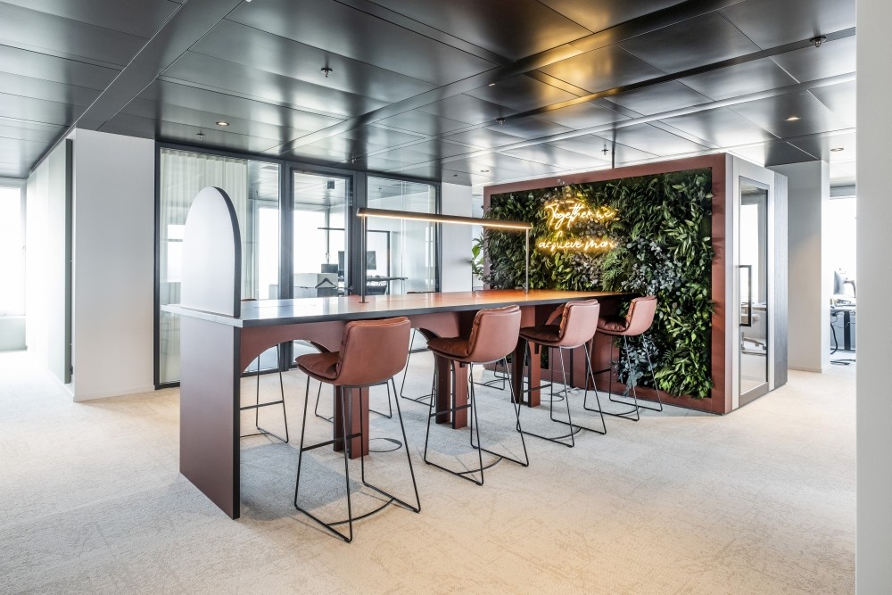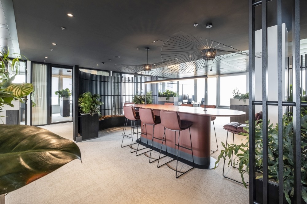Im Open-Space-Bereich sorgen biophile Formgebung und Pflanzen für eine angenehme Atmosphäre. Abbildung: Arnt Haug