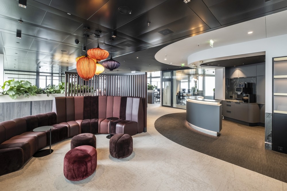 In einem Ham­bur­ger Wahr­zei­chen von 1964 – dem Empo­rio Tower – gestal­te­te Elb­strand & Mann­schaft eine inno­va­ti­ve Büro­flä­che unter dem Mot­to „New Work Meets Sus­taina­bi­li­ty“. Die Arbeits­welt erstreckt sich über drei Eta­gen und bie­tet ein aus­ge­wo­ge­nes Ver­hält­nis zwi­schen offe­nen und geschlos­se­nen Berei­chen. Fle­xi­ble und sta­tio­nä­re Arbeits­plät­ze, Kon­fe­renz­räu­me, Pho­ne Booths und Think Tanks för­dern eine dyna­mi­sche Arbeits­at­mo­sphä­re. Bio­phi­lic Design, opti­mier­te Akus­tik und Beleuch­tung sowie gesun­de Innen­raum­luft sor­gen für eine hohe Aufenthaltsqualität.
