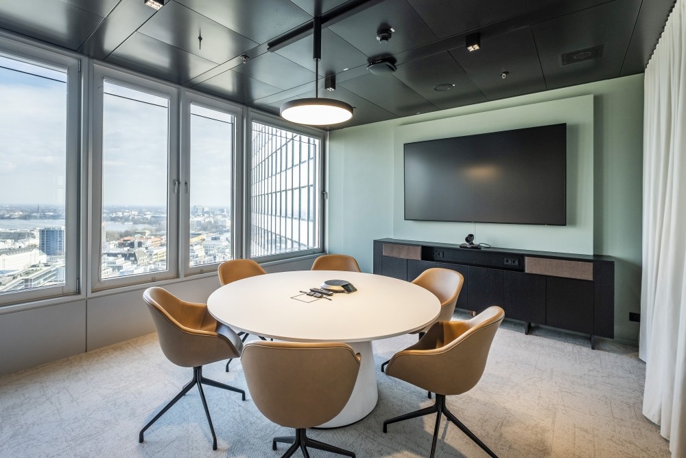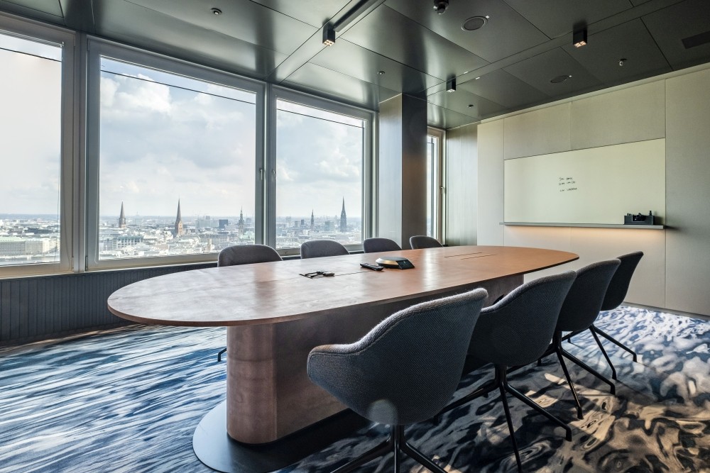 Teamraum mit Ausblick auf die Hansestadt. Abbildung: Arnt Haug