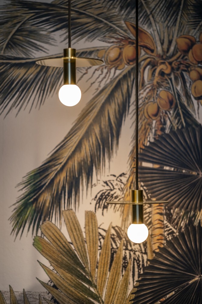 Leuchten und Tapeten im Sinne des Biophilic Design reduzieren Stress und steigern das Wohlbefinden am Arbeitsplatz. Abbildung: Arnt Haug