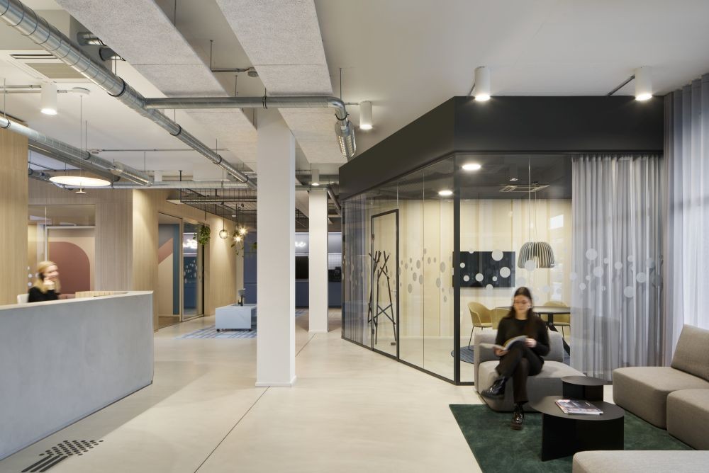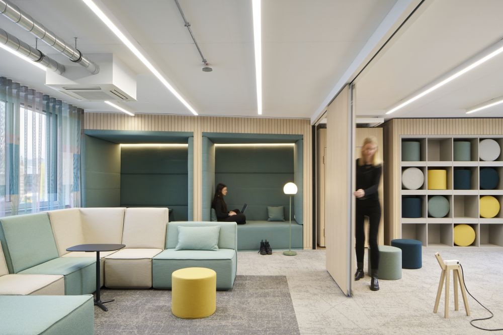 Loun­ges, Thinktanks und Rück­zugs­räu­me ergän­zen die klas­si­schen Arbeits­plät­ze. Abbil­dung: Anni­ka Feuss
