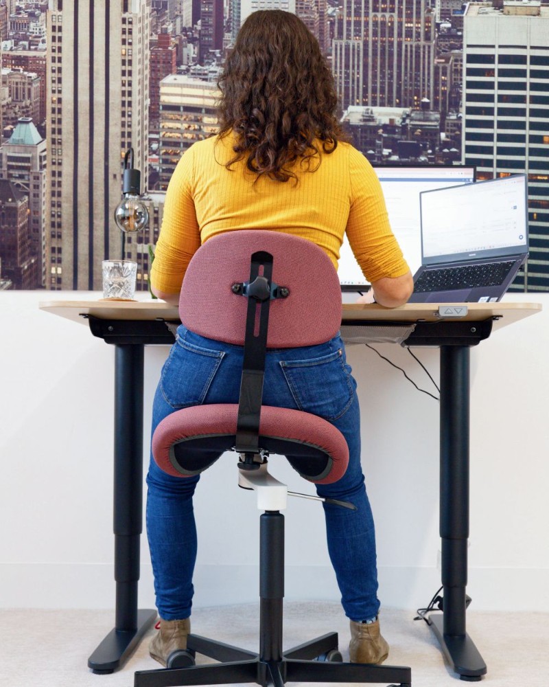 AURELIA VON BERGARDI: Der Sat­tel­stuhl akti­viert gezielt die tie­fe Rücken­mus­ku­la­tur. Mög­lich macht das die Smart-Moving-Tech­no­­lo­gie – eine zwei­ach­sig geführ­te Bewegungs­mechanik, die seit­li­che und hori­zon­ta­le Mikro­bewegungen erlaubt. Die Wir­bel­säu­le bleibt auf­ge­rich­tet, die Mus­ku­la­tur wird trai­niert. Ein inno­va­ti­ves Konzept.