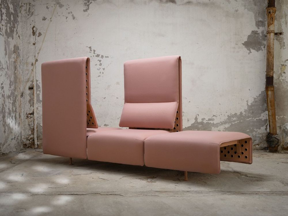 CIRCULUS VON OFFECCT: Modu­lar und skulp­tu­ral wirkt das Sitz­sys­tem aus der Feder des ita­lie­ni­schen Desi­gners Mario Fer­ra­ri­ni. Basis der Sitz­mö­bel sind per­fo­rier­te Metall­pa­nee­le. Das gesam­te Sys­tem besteht aus nur 14 Kom­po­nen­ten, was Repa­ra­tur, Auf­ar­bei­tung und Recy­cling erheb­lich erleichtert.