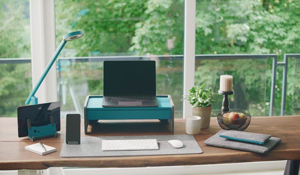 LUCTRA TABLE LITE VON DURABLE: Die LED-Tisch­leuch­te hat uns mit bio­lo­gisch wirk­sa­mem Licht und inno­va­ti­ver Ges­ten­steue­rung beein­druckt. Die Farb­tem­pe­ra­tur des Lichts ist stu­fen­los zwi­schen 2.700 K und 6.500 K ein­stell­bar. Ins­be­son­de­re als Green Water­fall Edi­ti­on ein opti­sches High­light auf dem Schreibtisch.