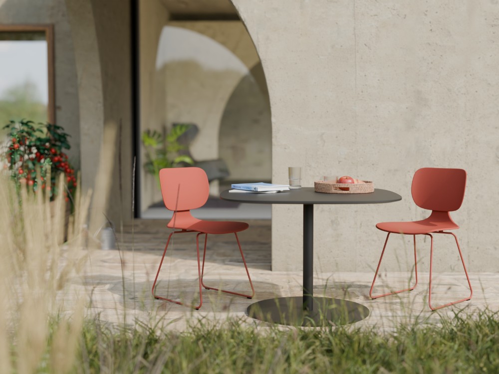 COMEET OUTDOOR VON KLÖBER: Die­ser Stuhl ist sehr gut für Mee­tings und Pau­sen im Frei­en geeig­net. Er besitzt ein korrosionsbestän­diges Kufen­ge­stell, hat UV-Sta­bi­li­sa­to­ren in der Far­be und erfüllt die DIN-Nor­men für Out­door-Sitz­mö­bel. Das Design ist redu­ziert, wohn­lich und för­dert ein ange­neh­mes Sitz­ge­fühl. Auf ins Freie.