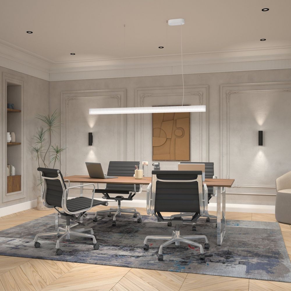 OPTICLIP TERRA VON SYLVANIA: Die Decken­ein­bau­leuch­te besteht zu 60 Pro­zent aus zer­ti­fi­zier­tem, recy­cel­tem Papier und wird ohne den Ein­satz von Kleb­stof­fen mit Falt­tech­ni­ken in Form gebracht. Die Lebens­dau­er von bis zu 60.000 Stun­den und der nied­ri­ge Blen­dungs­grad (UGR<19) prä­de­sti­nie­ren sie für Büros.