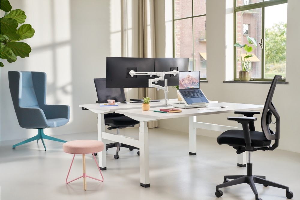 VIEWGO VON DATAFLEX: Der ergonomisch verbesserte Monitortragarm ist für zwei Bildschirme mit einem Gewicht von jeweils bis zu 4 kg und einer Größe von jeweils bis zu 27 Zoll ausgelegt. Dank seiner schlanken, aber robusten Stahlkonstruktion spart er nicht nur Platz, sondern verleiht dem Schreibtisch zu Hause oder im Büro einen modernen Touch. Das finden wir stark.