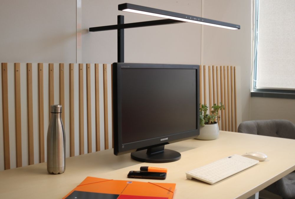 ELITE LUMINO VON UNILUX: Diese Schreibtischleuchte lässt sich per schwenkbarem (+/- 90 Grad) und gleitendem Arm positionieren. Highlight ist aber der Lichttherapie-Modus. Hier sorgt biodynamisches Licht für mehr Leistungsfähigkeit. Im Bundle mit dem Monitortragarm Axio von Unilux (#36) ein tolles Team.