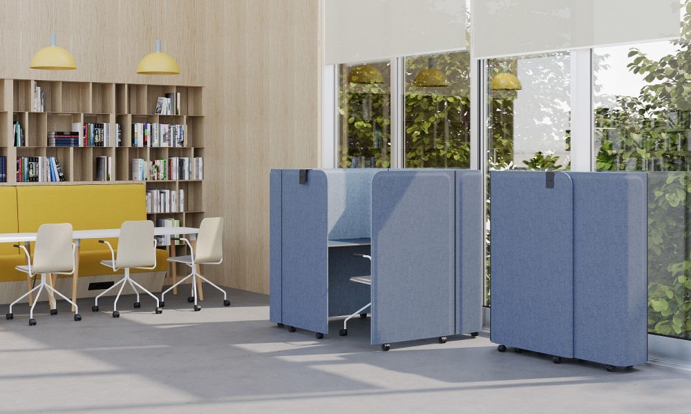 BRAINY VON NOWY STYL: Auf­klap­pen, hin­set­zen, arbei­ten. Die­ser mobi­le Ein­zel­ar­beits­platz ist im Hand­um­dre­hen ein­satz­be­reit. Er för­dert fokus­sier­tes, ablen­kungs­frei­es Arbei­ten – dank akus­tisch wirk­sa­mer Sei­ten­wän­de. Wenn die Wis­sens­ar­beit getan ist, ein­fach zusam­men­klap­pen und zur Sei­te rol­len. Aus unse­rer Sicht eine klu­ge Art der Arbeitsplatzgestaltung.