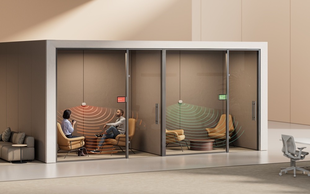 SPOT VON LOGITECH: Ein Sen­sor für smar­te Arbeits­platz­au­to­ma­ti­sie­rung, geeig­net für Groß­raum­bü­ros sowie klei­ne Thinktanks. Neben einer Prä­senz­er­ken­nung erfasst das kom­pak­te Gerät zudem zahl­rei­che Mess­wer­te zum Raum­kli­ma wie Tem­pe­ra­tur, Luft­feuch­tig­keit und Koh­len­di­oxid. Ein klei­nes Kraft­pa­ket, mit dem sich Wohl­be­fin­den und Ener­gie­ef­fi­zi­enz am Arbeits­platz bes­ser ver­ste­hen und opti­mie­ren lassen.