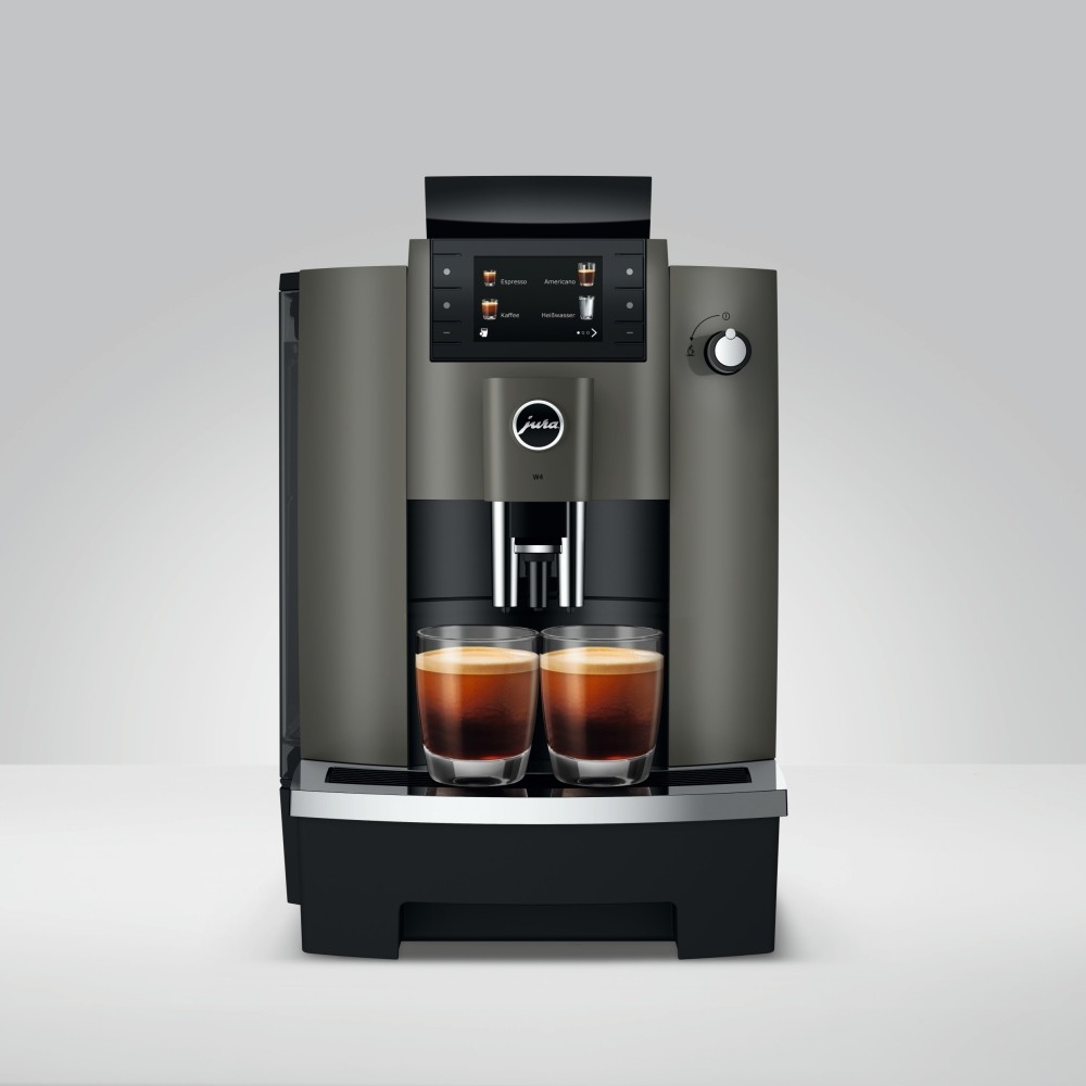W4 VON JURA GASTRO: Ein Kaf­fee­voll­au­to­mat, der sich aufs Wesent­li­che kon­zen­triert: auf schwar­zen Kaf­fee. Der kom­pak­te Pure-Cof­fee-Voll­au­to­mat brüht bis zu 50 Tas­sen am Tag – von Espres­so über Ame­ri­ca­no bis hin zu Lungo. Klas­si­schen Café crè­me in JURA-Qua­li­tät kann er natür­lich eben­so. Dank Heiß­was­ser­funk­ti­on kom­men auch Tee­lieb­ha­ber auf ihre Kos­ten. End­lich mal ein Voll­au­to­mat ohne viel Chichi.