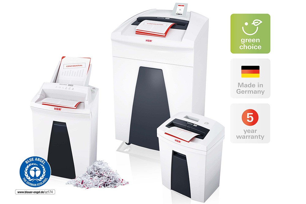 Viele Geräte der Produktserie HSM Securio wurden mit dem Blauen Engel ausgezeichnet. Abbildung: HSM GmbH + Co. KG